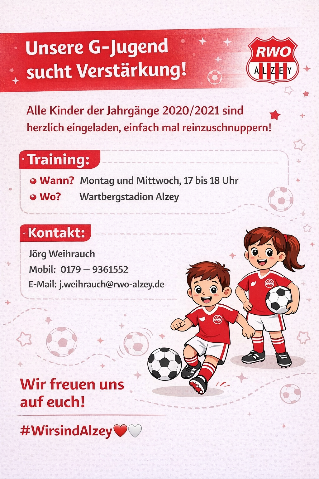 Alle Kinder der Jahrgänge 2020/2021 sind herzlich eingeladen, einfach mal reinzuschnuppen ⚽️⚽️⚽️